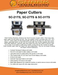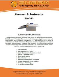 Shark Finishing Machinery makes every effort at time of publication to ensure the accuracy of its equipment information. Shark Finishing Machinery will not be liable for omissions and/or errors. Due to continued changes and improvements of our product line, specifications and information are subject to change without notice. Actual results are dependent upon application,paper stock, print engine used and environmental conditions can and will affect results.